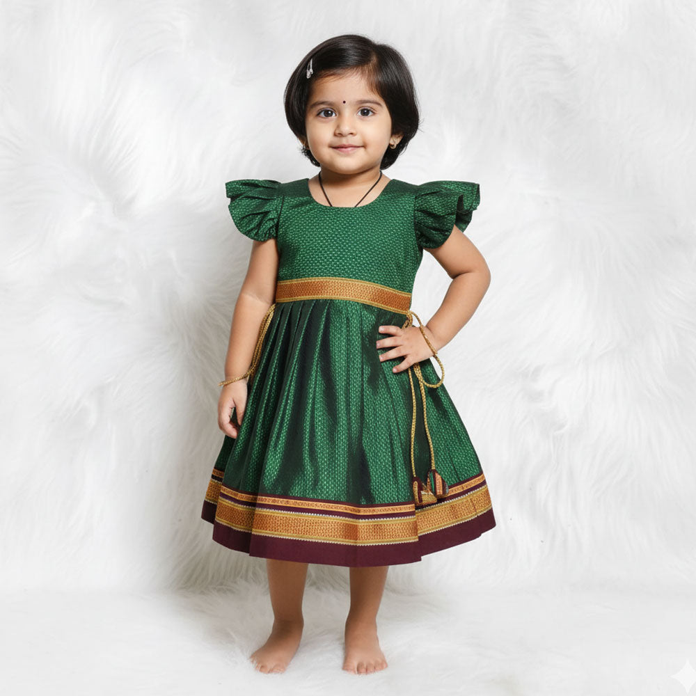 Let your little one shine in our Green Delight frock. The elegant lace pattern and high-quality khun fabric provide a perfect blend of comfort and style for any event.