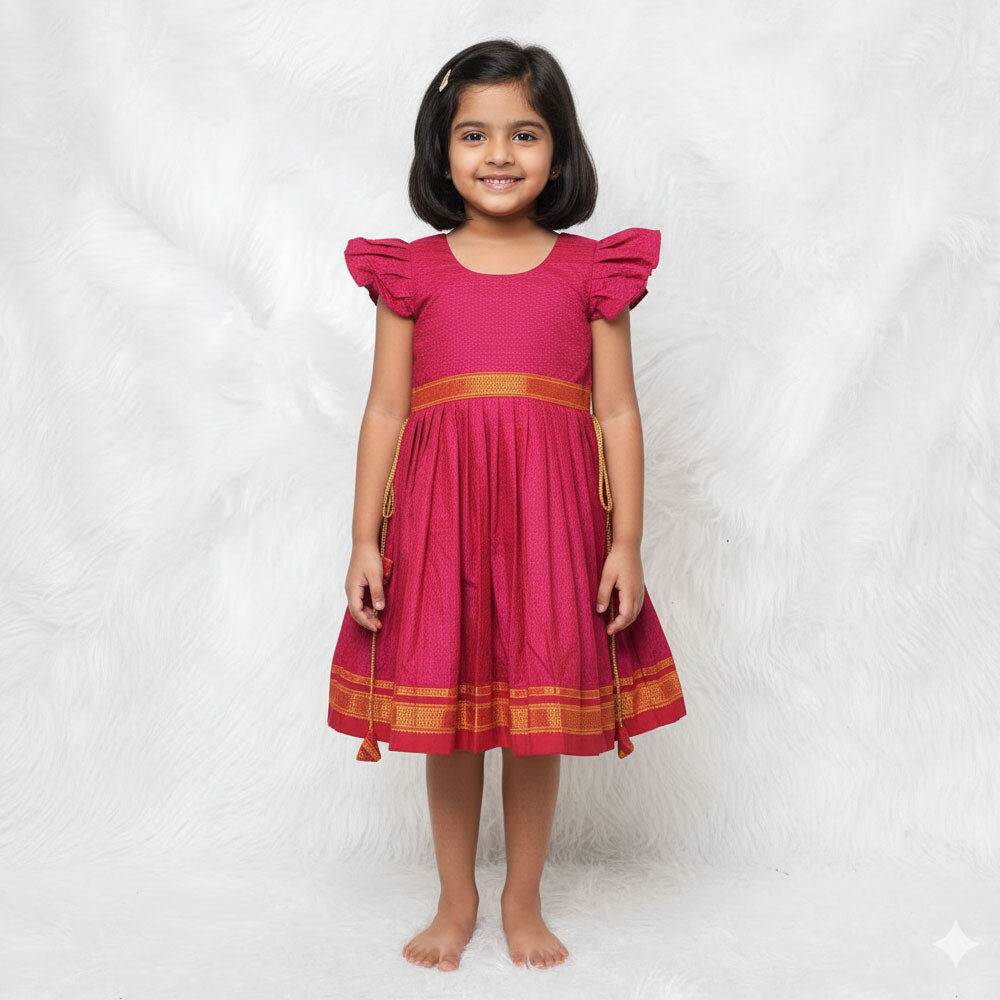"Elevate your child's wardrobe with this stunning Pink Khun Frock featuring an exquisite side lace pattern. this frock combines traditional craftsmanship with modern aesthetics. Whether it's a family gathering or a birthday party, your little one will shine in this beautiful attire."